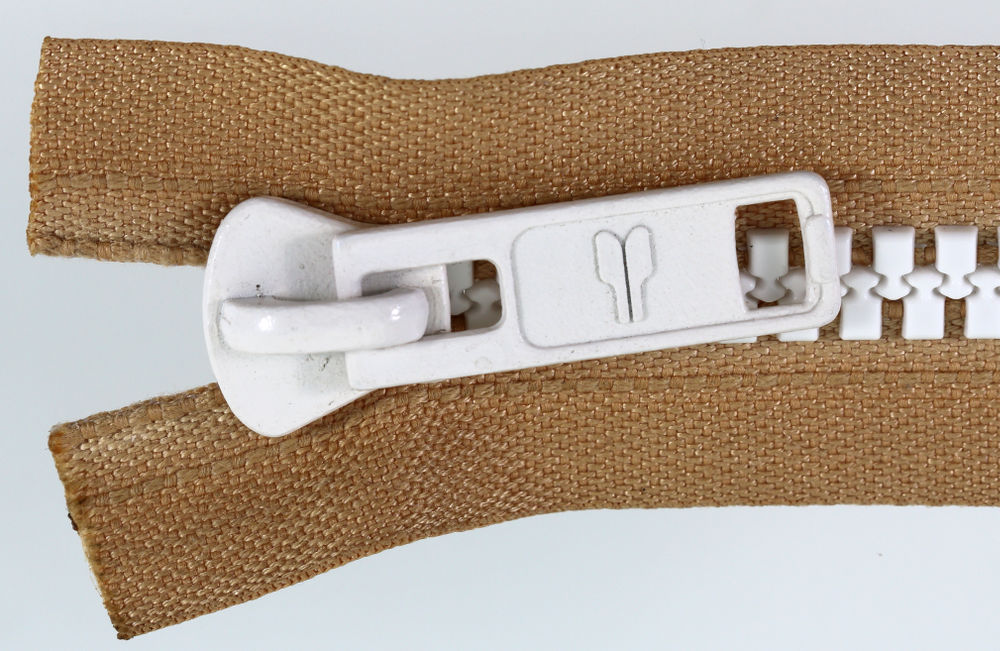 Nachfolgend zeigen wir Ihnen Schritt für Schritt, wie Sie solch ein längliches Anfangsteil am oberen Ende eines Delrin-Plastikkrampen-Reißversschlusses anbringen.