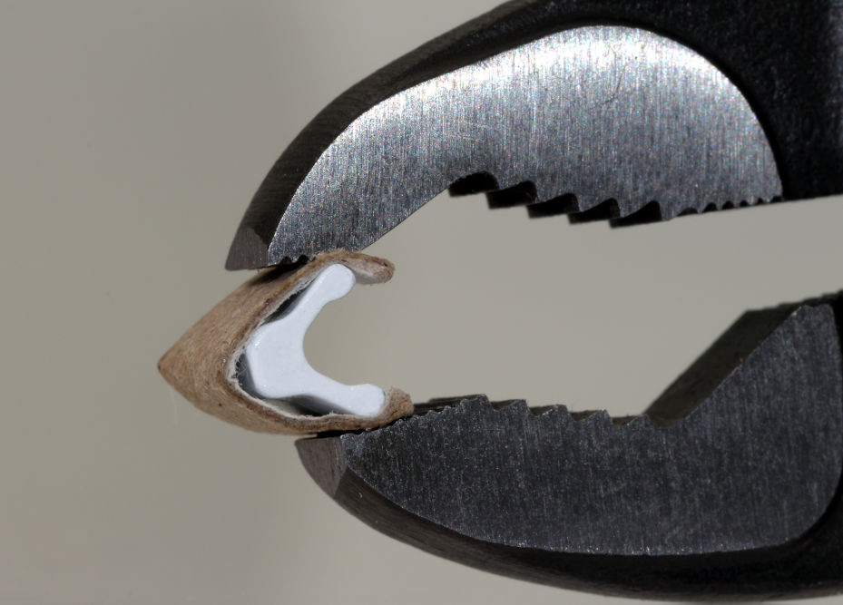 Setzen Sie ein Anfangsteil zwischen die Backen einer geeigneten Zange. Die Backen der Zange sollte mindestens so breit wie das Anfangsteil sein, damit sich die Backenkontur nicht in die Oberfläche des Anfangsteiles prägt. Wenn die Innenflächen der Backen nicht glatt, sondern beispielsweise